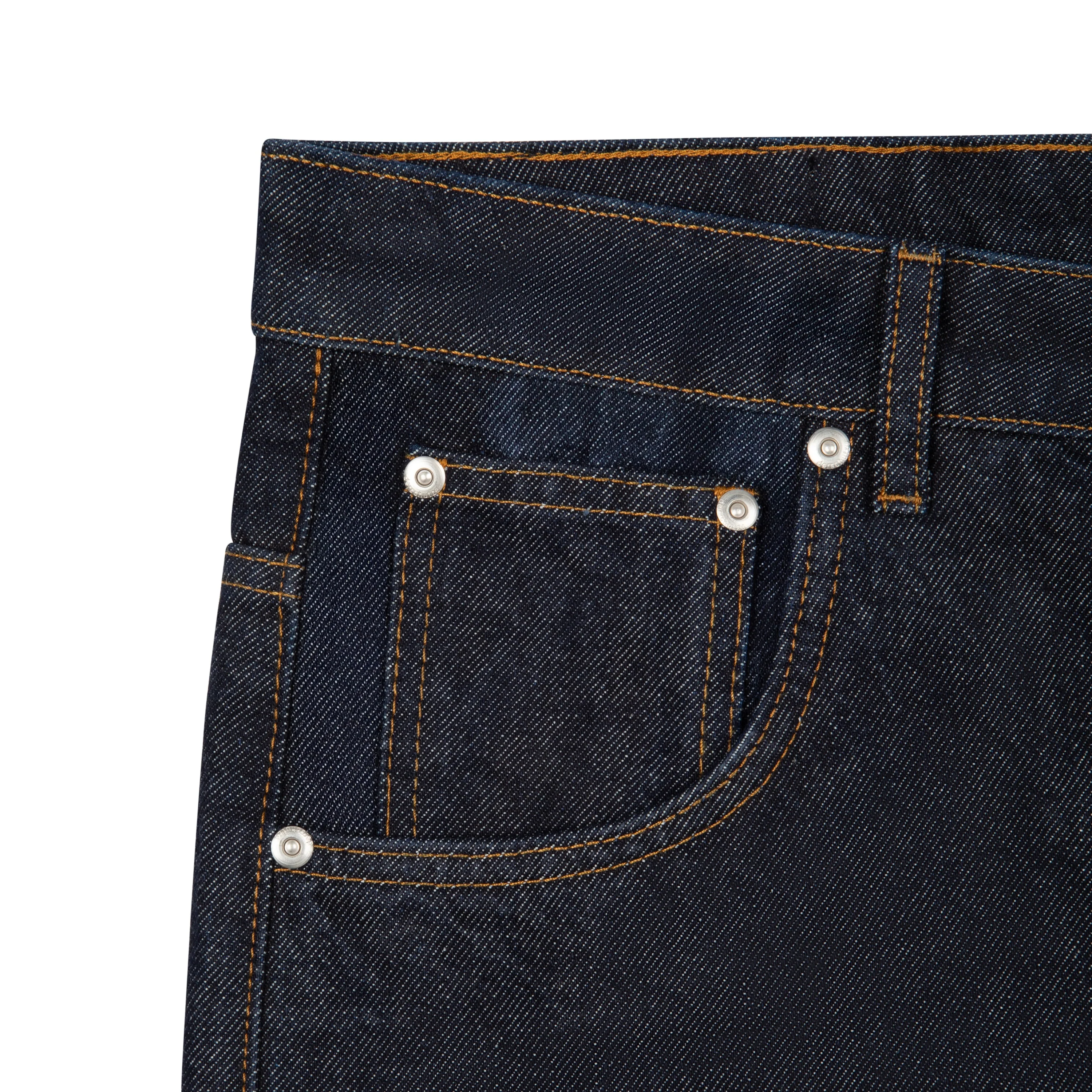 14,5oz denim / 100% cotton / embroidery on front and back / debossed printed leather patch / wash inside out / straight fit / fits true to size