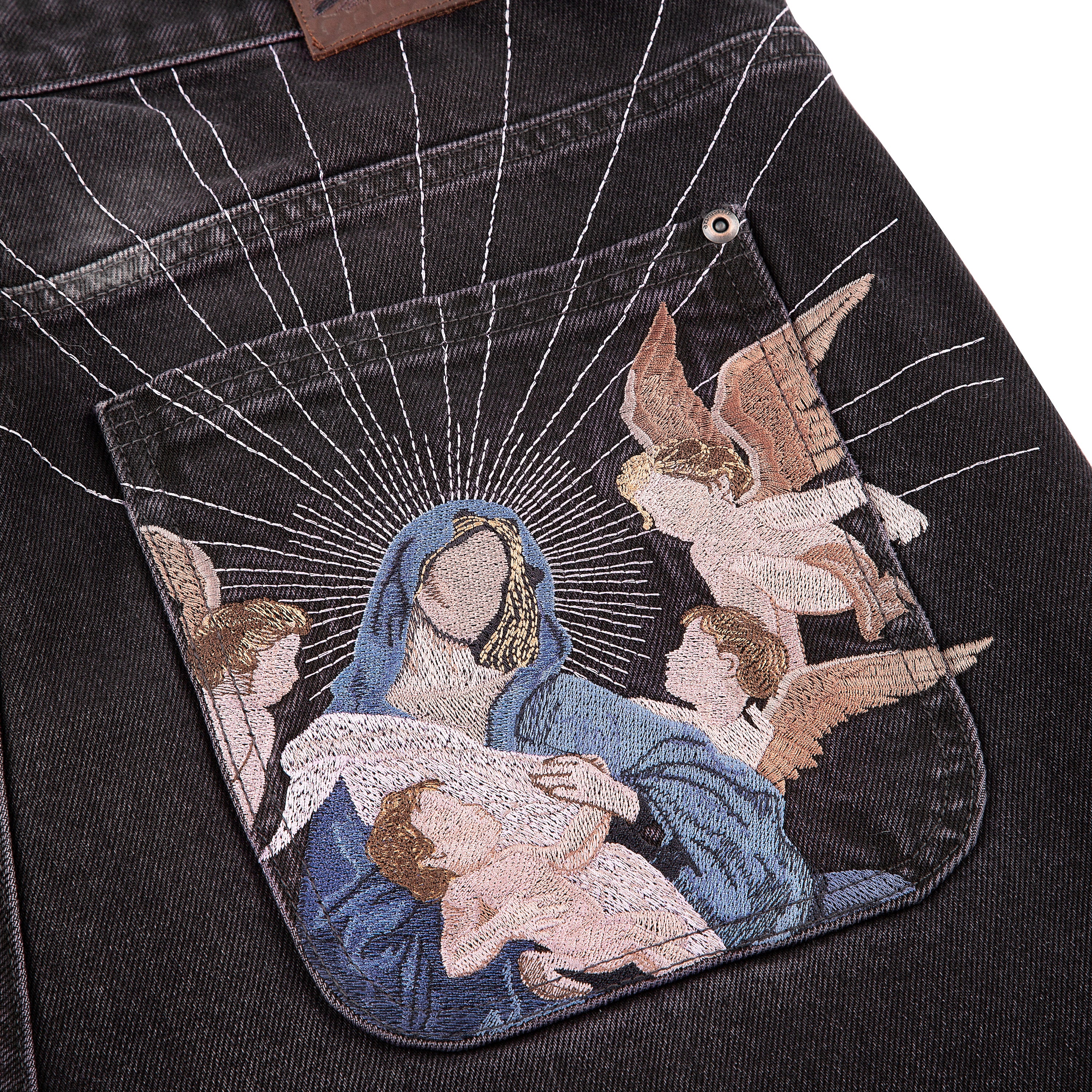 14,5oz denim/ 100% cotton/ embroidery on back/ purple tint/ baggy fit